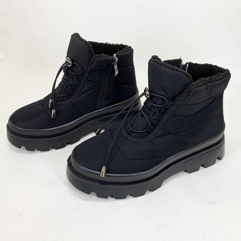 Женские сапоги с утеплением - это идеальный выбор для холодного времени года. Модель выполнена в глубоком черном цвете, который гармонично сочетается с любым стилем одежды. Благодаря мягкому внутреннему меху сапоги обеспечивают тепло и комфорт в течение всего дня. Внешний материал имеет приятную на ощупь текстуру, а широкая шнуровка позволяет надежно фиксировать обувь на ноге. Объемная подошва с глубоким протектором гарантирует устойчивость и безопасность на скользкой поверхности. Обувь не только практична, но и стильна – отлично подходит для ежедневной носки в зимних условиях. Характеристики Тип: женские зимние сапоги Материал верха: текстиль с эффектом замши Подкладка: искусственный мех Подошва: ТЕП (термоэластопласт) Застежка: шнуровка Цвет: черный Сезон: зима Преимущества Утепленный внутренний слой для морозной погоды Удобная посадка благодаря мягкой конструкции Современный внешний вид под любой образ Надежное сцепление с поверхностью благодаря рельефной подошве Идеальны для ежедневного использования