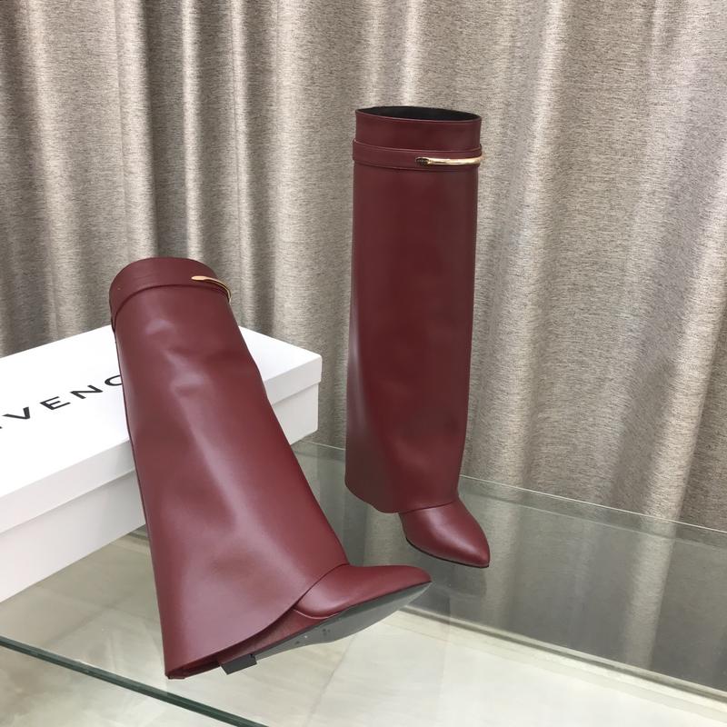 GIVENCHY Shark — стильні чоботи преміум класу ~ Модель виконана з глянцевої натуральної шкіри з прямим халявом та загостреним носком. Декорована шкіряним ремінцем із металевою пряжкою з логотипом GIVENCHY. ~ Зручна колодка та обгортаючий клин висотою 9,5 см забезпечують комфортну посадку. Матеріал верху — натуральна теляча шкіра, підкладка — овеча шкіра. ~ Розміри: 35–42 Модель доступна під замовлення Термін доставки: 14–28 днів