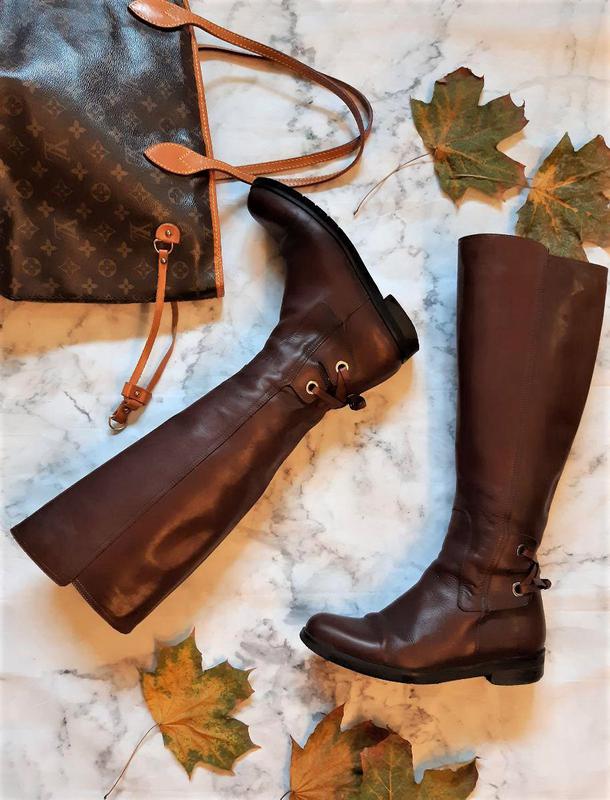 Шикарные кожаные сапоги коньячного цвета, сапожки, ботфорты🍁