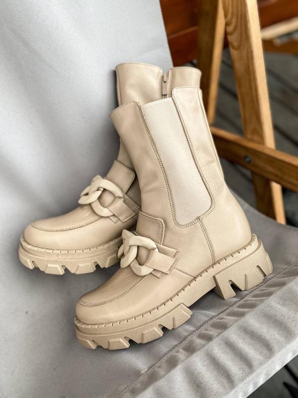 Зимові челсі з ланцюжком☄️ Зима❄️ Арт: 0109 Колір: бежевий Розміри: 36 37 38 39 40 Матеріал: якісна натуральна шкіра Всередині: натуральне щільне хутро
