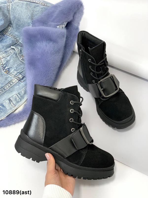 🔥🔥🔥 Размеры 37,40,41,42 ✔️ Код 10889 Ботинки зима комбинированные декор ремешок. Идут размер в размер Материал: натуральная кожа/замш, внутри искусств мех Подошва 3/5 см Высота от подошвы 12,5 см Размерная сетка: 37р-24 см 40р-25,5 см 41р-26 см 42р-26,5 см
