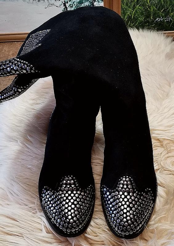 P. P. 3. Пи. Пи. Три. Производитель Россия Винтаж начало нулевых Демисезонные сапоги из очень мягкой натуральной замшевой кожи С заклепками на клею С байковым утеплителем Пятка и носок уплотнены Сбоку брендированная металлическая молния Размер указан 38, размеру соответствуют На стандартную стопу 24,5 идеально Стелька внутри от края до края 25 см Ширина стельки по подошве 8,8 Высота сапога от пола 38 Каблук 2,3 см Голенище вверху полуобхват 17,5 Щиколотка полуобхват 13 Состояние бу очень хорошее Дефектов нет Следы использования на подошве и в виде утраты заклепок, абсолютно не критично Всё показано на фото и учтено в стоимости товара Торг абсолютно не уместен Цена указана уже со скидкой новой почтой возможен наложенный платёж с предоплатой в сумме 200 грн Укрпочтой отправка только с полной оплатой