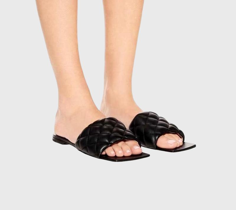 Черные кожаные шлепанцы из коллекции Боттега Венета идеально подойдут для ежедневной носки. Модель выполнена из натуральной стеганой кожи. Размер 39, длина от носка до пятки 26 см. Состояние отличное, следы носки видны только с очень близкого расстояния.