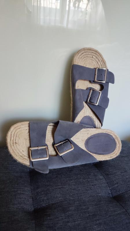 Классные, добротные шлепанцы из натуральной толстой замши Взировали один раз. Вышли из подъезда и зашли) Вы появились крупными (Указано 41 размер. По стельке от края до края 27.5 см. Ширина регулируется. Подойдут как на узкую, так и на широкую ногу. Имейте в виду, что они достаточно тяжелые. Не одноразовые легкие шлепки. Платформа 4 см.