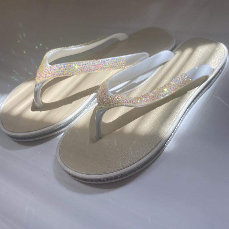 Новые женские шлёпанцы блестящие вьетнамки через палец