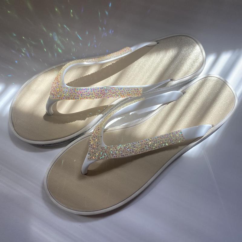 Новые женские шлёпанцы блестящие вьетнамки через палец