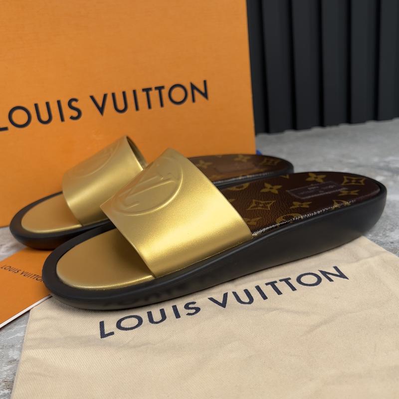 Louis vuitton sunbath mules lv monogram gold женские шлепанцы кожа оригинал 38 eur