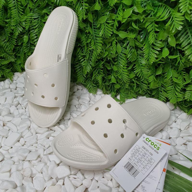 Белые шлепанцы CROCS Classic Slide. Удобные. Classic II Slide - стильная и легкая модель, с комфортом классических сабо .Невероятно легкие. Легко чистить и быстро сушить. Литой полимерный материал Croslite ™обеспечивает комфорт и поддержку в течение всего времени носки. Размеры в наличии от 36 до 42, данная модель маломерит. Наличие уточняйте. Есть в чёрном цвете.