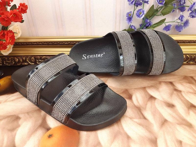 Шльопанці зі стразами Підошва: 1,5 см÷1см Колір - чорний Не високий підйом Угорщина Розмір від краю до краю: 37р - 24,0 см 38р - 24,5 см 39р -25,5 см 40р -26 см Ар 1587
