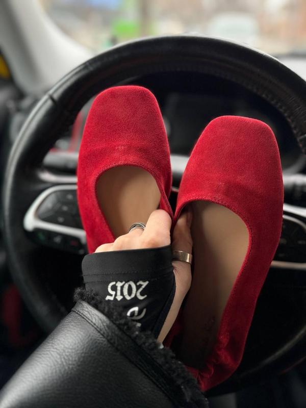 Трендові балетки Розмірний ряд: 36-40 Висота каблука: 1 см Колір:червоний Матеріл: замша Матеріал всередині:шкірпідклад