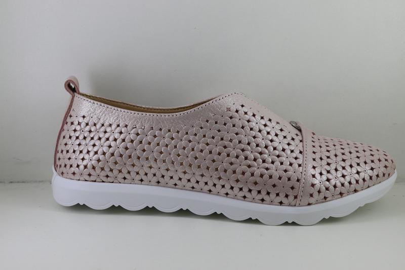 Балетки женские летние кожаные в перфорацию medium код-(1273 пудра)