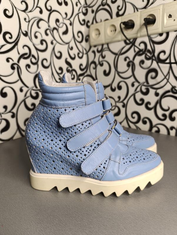 Новые сникерсы. Материал натуральная кожа. Липучки действенны. Скрытая танкетка 6 см + подошва 3 см Удобная колодка