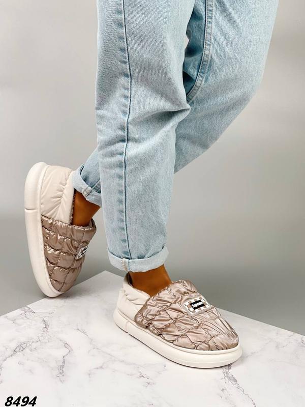 Код 8494 Зимові капці для вулиці Сезон зима Матеріал плащівка Всередині еко-хутро Колір капучино Висота від п'яти 6 см Висота підошви 3 см Розмірна сітка: 36-37 - 23-23,5 см