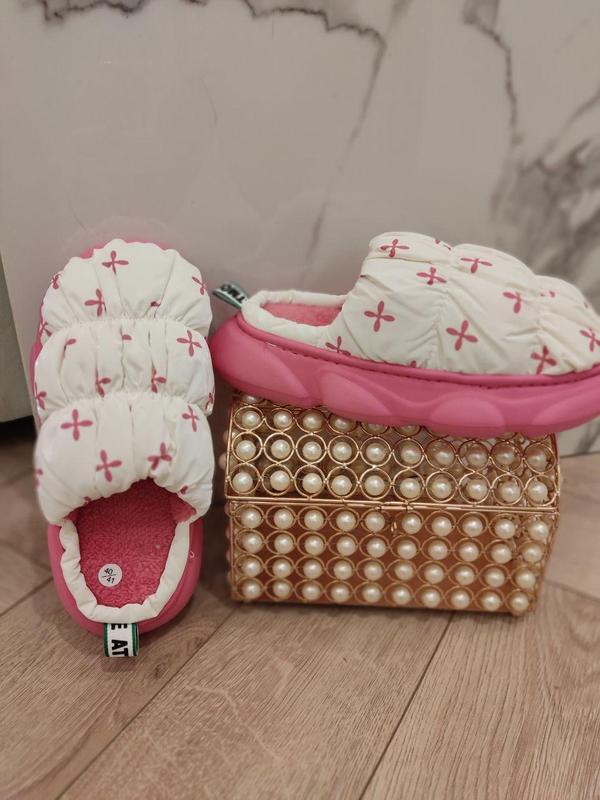 Зимние тапочки для улицы Мягкие, уютные, теплые и такие удобные – все это как нельзя лучше характеризует наши тапочки. Сезон ОСЕНЬ-ЗИМА Материал плащевка Внутри эко-мех Цвет РОЗОВЫЙ ЗАМЕРЫ ПО СТЕЛЬКЕ: 36-37-23 СМ 38-39-24 СМ 40-41-25 СМ Высота от пятки 6 см Высота подошвы 3 см