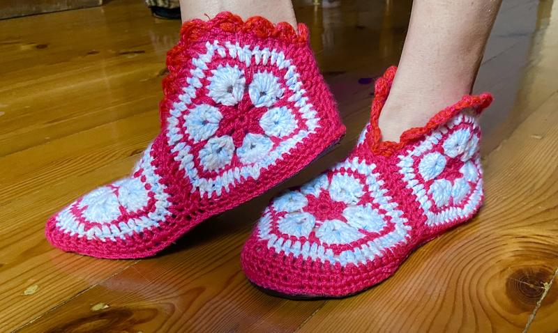 Женские ажурные эксклюзивные тапочки из пряжи на подошве из натуральной кожи . мягкие , красивые , удобные . Ручная работа. Комнатные тапочки ажурные, яркие , тёплые . Размер - 36 - 38 см . На самом деле цвет красивее и ярче чем на фото