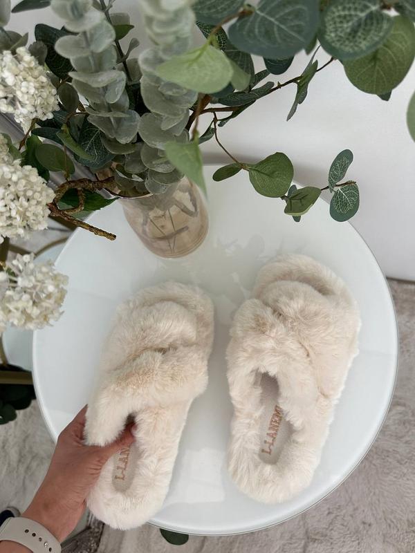 Комнатные тапочки тапочки пушистые женские меховые теплые накрест 5 цветов