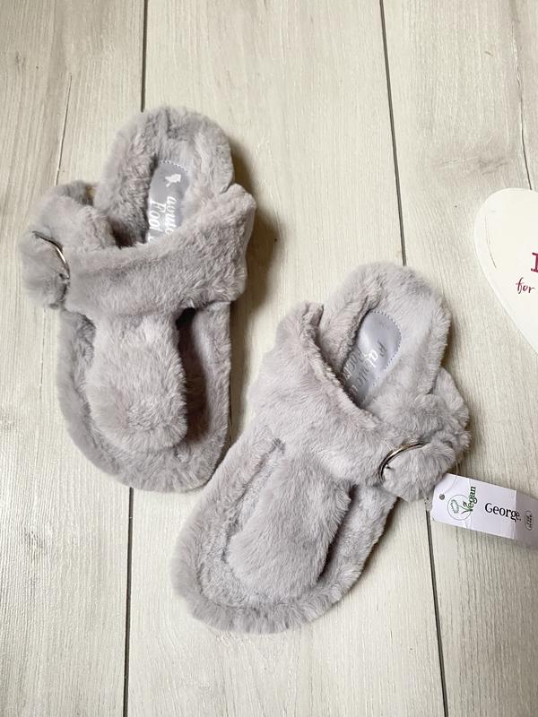 Жіночі хутряні тапочки-в'єтнамки сірі George Теплі та стильні домашні капці-в'єтнамки на плоскій гумовій підошві