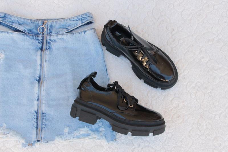 Лаковые кожаные туфли на шнурках, оксфорды 39 размера