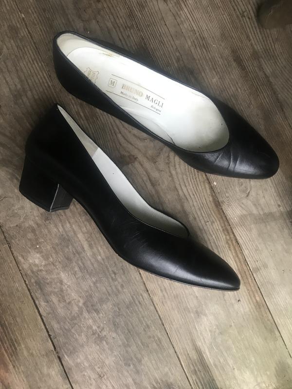 Стильные качественные туфельки от Bruno Magly. Актуальная модель:красивый мыс, декор на каблучках(металлические накладки золотистого цвета). Цвет чёрный, внутри-гладкая лайковая кожа светло-бежевого цвета. Размер-39, длина по стельке-25,5 см. Минимальные следы носки