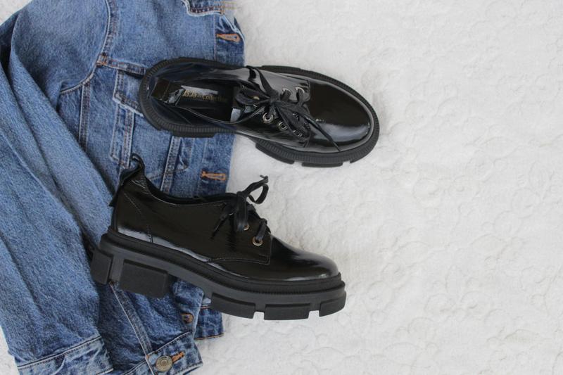 Лаковые кожаные туфли на шнурках, полуботинки 39 размера