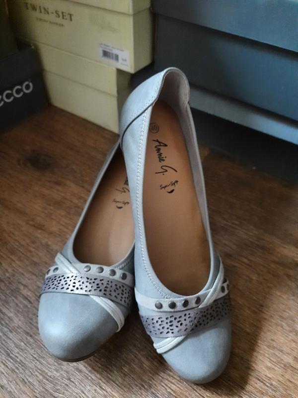 Туфли anniel super soft раз 40 эргономическая супер мягкая стелька принимающая форму стопы Компания Anniel, появившаяся в конце 70-х годов, изначально специализировалась на выпуске спортивной обуви и одежды. Творения итальянских дизайнеров сочетали в себе удобство, практичность и надежность благодаря активному использованию инновационных технологий в производстве. Становление итальянского бренда Anniel Маленький семейный бизнес постепенно расширялся. Неизменно высокое качество, внимание к деталям и необычный дизайн обуви делали ее все более востребованной на рынке Италии. Однако, фирма Anniel не ограничивалась одной только обувью, разрабатывая и производя высокотехнологичную спортивную одежду. В частности, термоодежду для фигурного катания, которая и сегодня имеет успех на рынке. В результате долгих творческих поисков вниманию покупателей была представлен оригинальный симбиоз спортивной и элегантно-классической обуви – балетки. Это определило основное направление в развитии торговой марки в последующие годы. Балетки органично вписывались в популярный образ, созданный Бриджит Бардо и Жаклин Кеннеди. Мировое признание продукции компании Anniel В 2000 году бренд Anniel вышел на международный рынок. Первыми оригинальную итальянскую обувь по достоинству оценили японские покупатели. На сегодняшний день стильные, изысканные в своей простоте балетки имеет в своем гардеробе каждая женщина