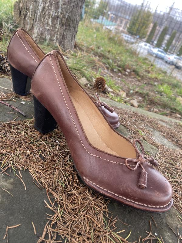Туфлі жіночі 37,38,40 та 41 розміру .Виготовлені в Іспанії.Повністю шкіряні,як верх так і середина.Невеличкий каблучок ,висотою 5 сантиметрів,дуже зручний і стійкий.Благородний коричневий колір і прошивка білою ниткою робить ці туфельки дуже цікавими.А шкіряний бантик кокетливо доповнює їх зовнішній вигляд .