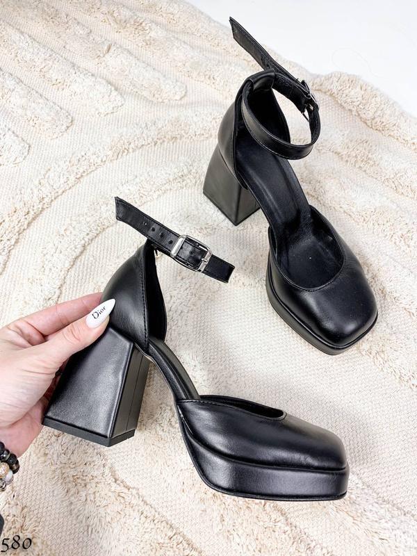 Код 580 Туфлі, колір: BLACK, матеріал: НАТУРАЛЬНА ШКІРА, всередині: Шкірпідклад висота від п'яти 9 см платформа 2 см каблук 9,5 см виробник Україна з 36 по 40 розмір у розмір 36= 23,5 см 37= 24 см 38= 24,5 см 39= 25,5 см 40= 26 см