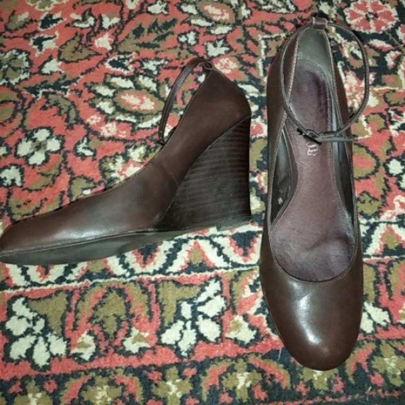 В НАЛИЧИИ ❗ Туфли коричневого цвета на танкетке. НАТУРАЛЬНАЯ КОЖА ФИРМЫ Aldo В ОЧЕНЬ ИДЕАЛЬНОМ СОСТОЯНИИ НА ФОТО ВИДНО. НО ЕСТЬ НЕБОЛЬШОЙ НЮАНС НА ЛЕВОМ ТУФЛЕ НЕТ НАБОЙКИ. НА ФОТО ВИДНО ТУФЛИ НА УЗКУЮ И СРЕДНЮЮ ПОЛНОТУ РАЗМЕР 37,5 СТЕЛЬКА 24,5 СМ ВЫСОТА ТАНКЕТКИ 9 СМ