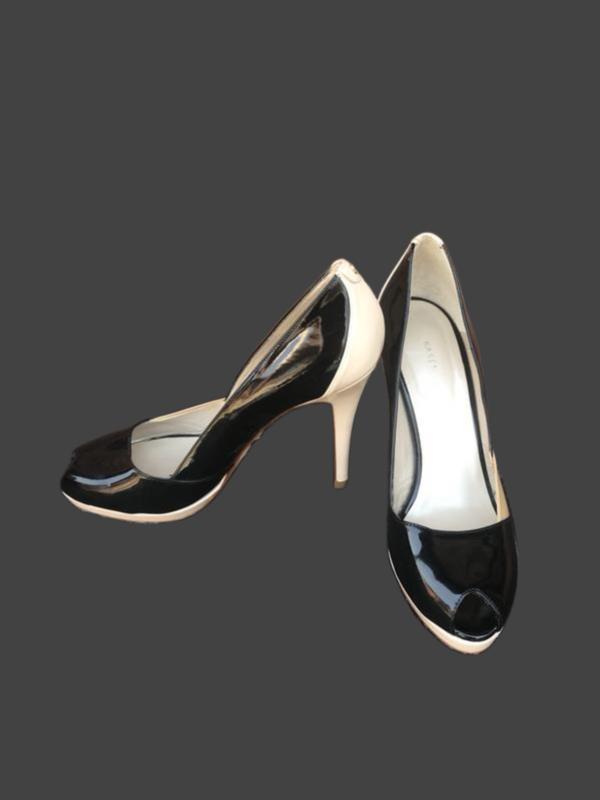 Ціна договірна! Пишить ваши пропозиціі. Туфли на платформе черного цвета торгового дома KEREN MILLEN made in Italy 🇮🇹 Элегантные туфли на высоком каблуке. Пятка, каблуки и внешняя вставка с бежевой натуральной лаковой кожи. Все туфли из натуральной лаковой кожи черного цвета закрытая Пятка Носок открыт Стелька и пятка из натуральной кожи бежевого цвета. Размеры: Длина потолки - 25 см Высота каблука сзади - 11,5 см