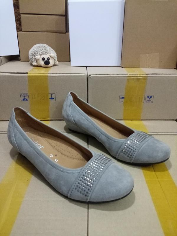Легкі і комфортні жіночі туфлі на низькій танкетці від відомого німецького бренду Gabor. Вироблені з м’якої натуральної замші зовні і натуральної шкіри і текстильної тканини всередині. М’яка шкіряна устілка Easy Walking (легка хода). Розміри: На етикетці виробника: 5 «G» По факту: 38 (устілка: 25 см. «G» - середня ширина стопи зі збільшеною повнотою.) Танкетка: 2.8 см. Наявність плям: дві зовсім маленькі плями на устілках. Видно на одному з фото. Наявність пошкоджень: відсутні. Ціна на нові в інтернеті: подібні моделі від 2200 до 3700 грн. Країна бренду: Німеччина. Країна виробник: Німеччина. Друзі, підписуйтесь! Майже щодня додаю класні і якісні речі, які будуть не лише довго Вам служити, але і доставлять задоволення від використання. Це саме той випадок, коли купуєш недорого, та ще і якісне!
