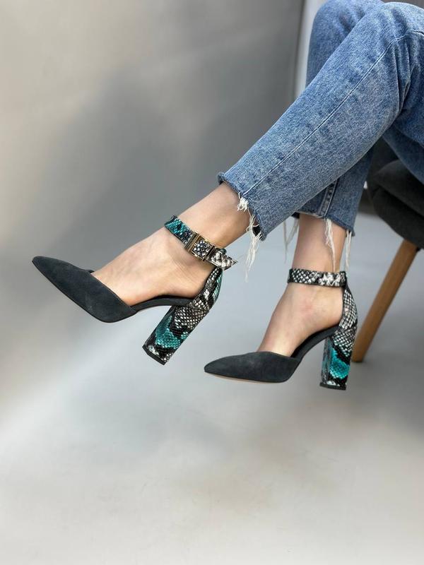 Эксклюзивные туфли из натуральной итальянской кожи и замша женские на каблуке