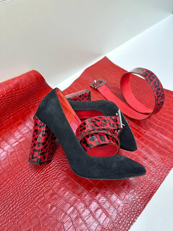 Эксклюзивные туфли натуральная замша и кожа лаковая красная леопард