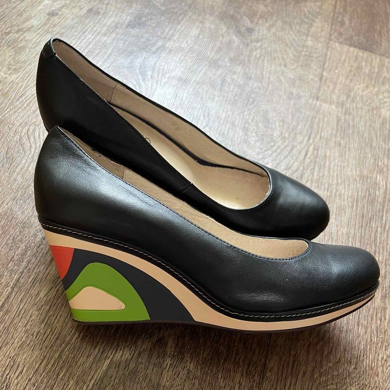 Туфли кожаные на цветной платформе, очень удобная колодка, круглый носок, указан размер 39, но маломерки, по стельке 25,3-25,5 см, высота платформы 7 см