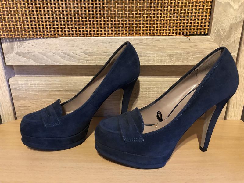 Женские туфли на высоком (12,5 см) каблуке, верх-синтетический материал темно-синего цвета, размер 39, на узкую ногу. Высота платформы 3 см. Практически новые, надевались 1-2 раза на мероприятия. “Centro”