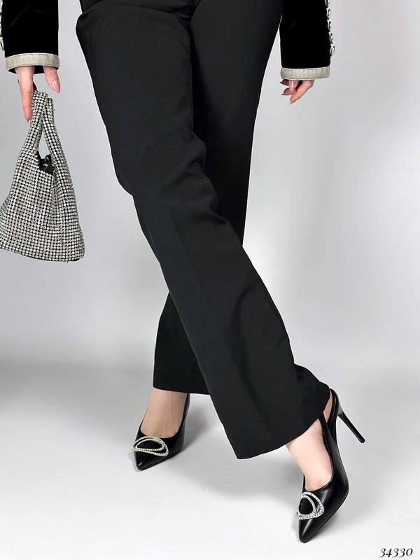Туфли слингбеки на высоком каблуке с украшением Цвет:черный Материал:теко кожа Сезонность: лето Код товару: 34330 ▪Высота каблука:10,5см Размер по сетке: 35-22,5; 36-23,5; 37-24; 38-24,5; 39-25; 40-26см