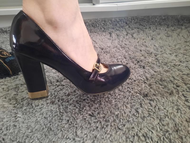 классические на устойчивом каблуке высотой 8 см.. с интересной декоративной пряжкой спереди