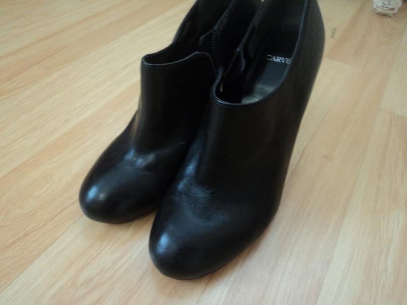 Ботиночки полностью кожаные, размер 39, по стельке 25.5, на узкую или среднюю ножку. Каблук 11 см. и скрытая платформа 1-1,5 см. очень удобная колодка. Без дефектов и изъянов!