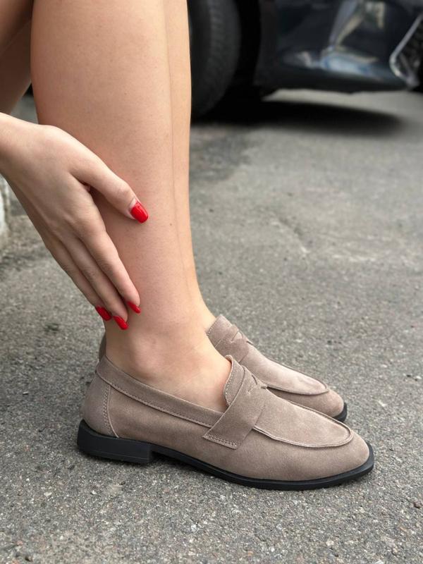 Лоферы женские замшевые бежевого цвета