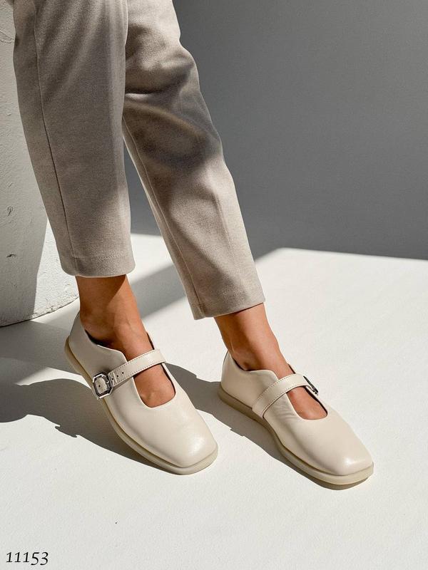 Код 11153🤩туфли балетки с ремешком натуральная кожа молочные
