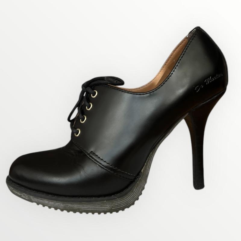 Чорні шкіряні туфлі на каблуках Dr Martens Zita Ofira, розмір 38 Унікальне та стильне поєднання традиційної майстерності Dr. Martens із жіночним дизайном. Вони мають витончені каблуки-шпильки, платформу, закритий носок в стилі оксфордів, шкіряний верх і шнурівку. Відомі протиковзкою підошвою та міцними матеріалами, ці туфлі додають характерного для Dr. Martens бунтарського духу до елегантного силуету. Натуральна цупка шкіра Dr Martens. Оригінал, купували в Британії в фірмовому магазині. Каблук: 10 см Платформа: 1.5 см Довжина устілки: 24.5 см Стан: прекрасний, носились декілька разів, з внутрішньої сторони на обох туфлях затертості (на фото), які утворились при ходьбі. Окрім цього немає подряпин, каблуки цілі. На носках помітна замʼятість. Оригінальної коробки не збереглось, але зберігаються в коробці іншого бренду.