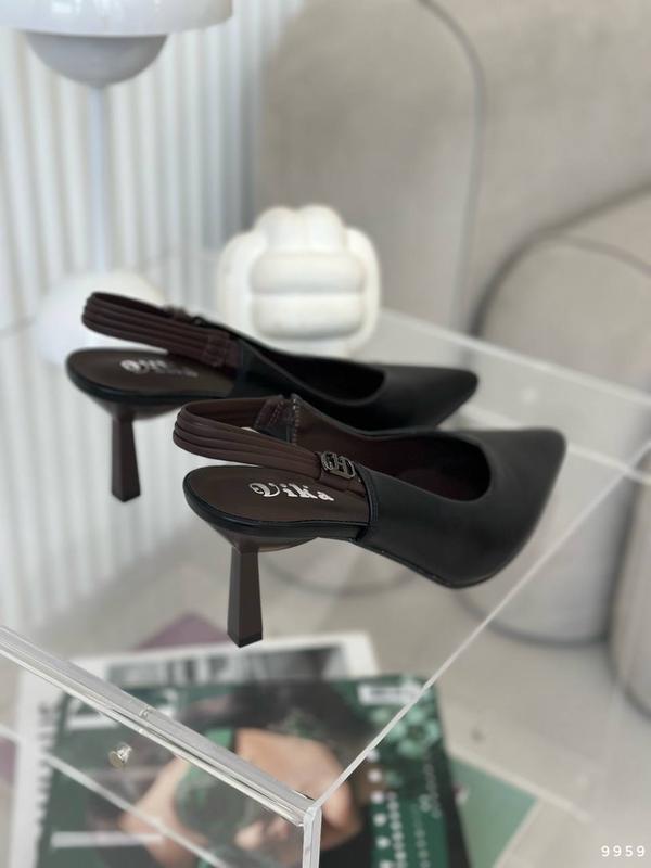 Новинка ❤️❤️❤️ Код 9959 Стильные черные в сочетании с коричневым туфли на невысоком каблуке, эко-кожа, каблук 7,5 см 36 - 23,5 см 37 - 24 см 38 - 24,5 см 39 - 25,5 см 40 - 26 см