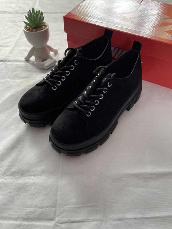 Стильные черные замшевые туфли на массивной подошве. Удобные, модные, идеально подходят для повседневной носки. Розімір 40