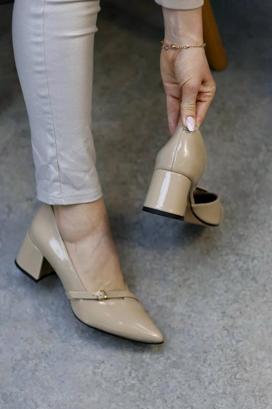 Туфлі лодочки з італійської шкіри та лаку бежеві на каблуках