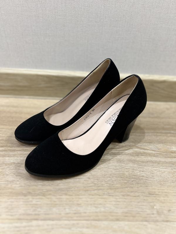 Жіночі туфлі чорні натуральна замша на підборах Розмір 38 Висота підборів 9 см