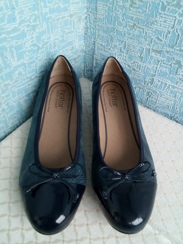 Шикарные кожаные женские туфли бренда Hotter в стиле Коко Шанель Убылись два раза, состояние почти новых. Кожа снаружи и внутри. Лаковые кожаные носки. Маленькие элегантные бантики. Очень удобные, мягкая, комфортные для ножек. Съемная кожаная стелька. Размер UK 6 1/2 EU 40 Стелька длина 26 см, ширина 8,5 см. Малесенький очень удобный широкий каблук 2 см