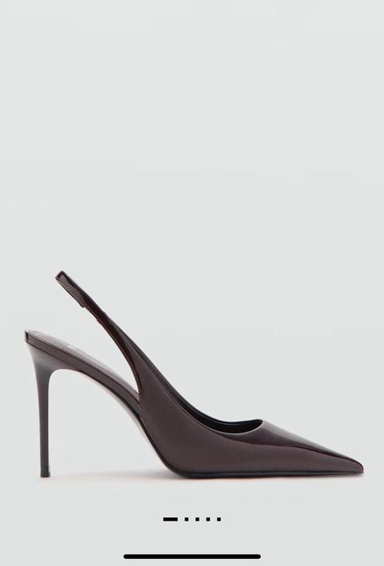 В наявності 38р (підійдуть на 37р), на розмір маломірять, а також в наявності 39р (підійдуть на 38р) Лаковані туфлі на підборах, з відкритою пʼятою, без застібки. Каблук висотою 10см