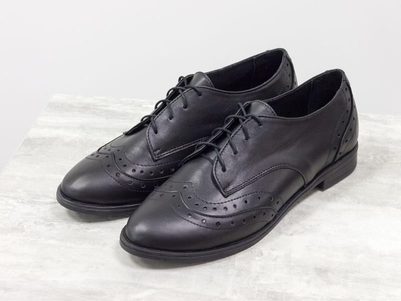 Классические туфли - Оксфорды из натуральной кожи черного цвета. Элегантная и строгая модель. Шнуровка отлично "подгонит" туфли по ножке. Обратите внимание - подклад у туфель так же натуральная кожа. Удобная облегченная подошва на невысоком каблуке. Рассчитаны на стандартную полноту ноги. Размерный ряд: 36-41. Полномерные соответствуют стандартной размерной сетке. Материал верха - натуральная кожа Внутренний материал - натуральная кожа Материал стельки - натуральная кожа Материал подошвы - ТЭП Высота голенища / задника - закрытый Высота каблука/платформы - 1см Цвет на выбор