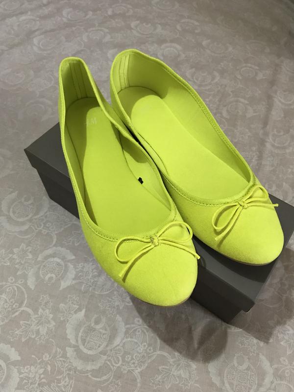 Яркие балетки H&M из эко-замши. Удобные, состояние как новые, обуты один раз.