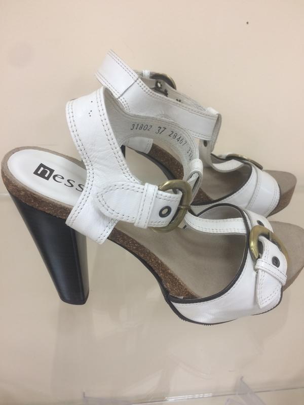 Стильные кожаные босоножки бежевого цвета, каблук - 9 см., платформа - 2,5 см., длина стельки - 23,5 см. {37 размер}, 23 см. - {36 размер}.