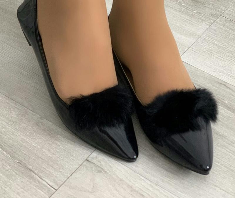 Стильные лаковые балетки с меховой отделкой, маломерят на размер